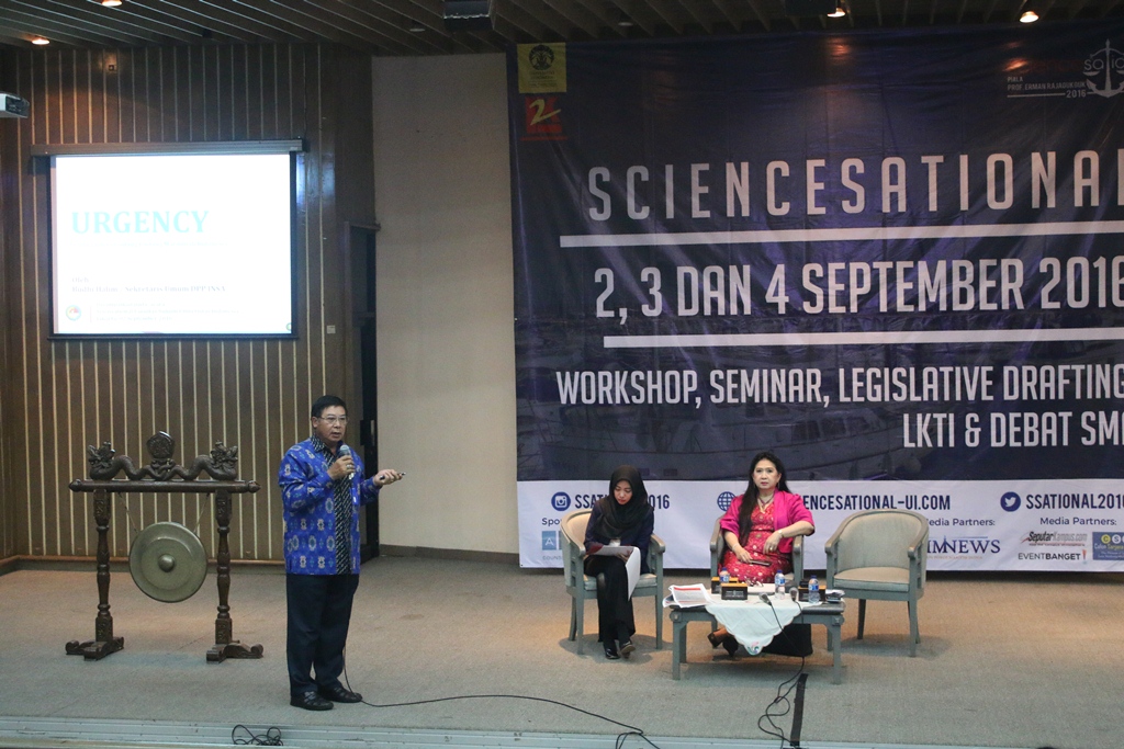Rangkaian acara Sciencesational 2016 pun kembali dilanjutkan mulai tanggal 2 September hingga 4 September 2016. Acara Sciencesational 2016 pun resmi dibuka oleh oleh Dekan Fakultas Hukum Universitas Indonesia,Prof. Dr. Topo Santoso, S.H., M.H. Kegiatan hari pertama dari rangkaian Sciencesational 2016, yaitu dilaksanakannya Seminar Hukum Nasional yang bertemakan “Urgensi Pembentukan Undang-Undang Maritim Menuju Indonesia Sebagai Poros Maritim Dunia” di Balai Sidang Universitas Indonesia. Pembicara dalam seminar ini adalah Dr. Chandra Motik, S.H., MSc (Dosen Hukum Maritim Universitas Indonesia) dan Budi Halim (Sekretaris Jenderal Dewan Pengurus Pusat Indonesian National Shipowners Association).